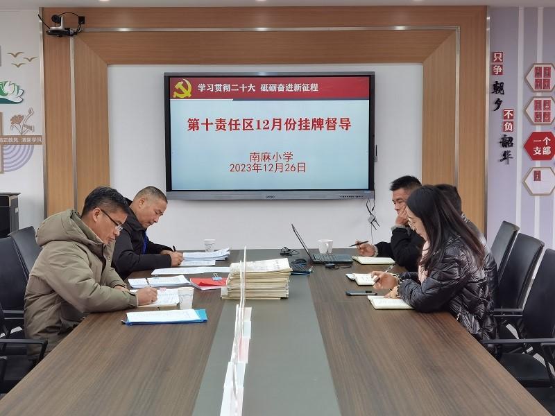 2023年12月26日,南麻小学接受第十责任区12月份挂牌督导,区责任督学沈利忠、周伟根进行了全面细致的督查。本次督导的重点是:双减工作、五项管理、课间十分钟、关工工作、德育工作、食品安全。两位督学进食堂、走班级、查看班主任手册、看资料、听汇报,对各项工作进行了细致深入的检查。督学对南小有关方面给予肯定,并提出了改进建议。