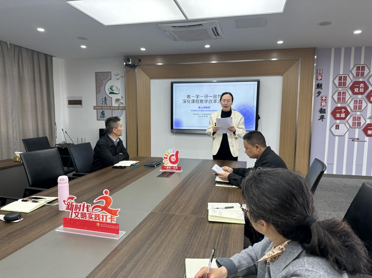 本次活动分为三个议程。首先由教导处王琴副主任带领大家学习了崔允漷教授的《教—学—评一致性:深化课程教学改革之关键》,文章指出,教—学—评一致性具有课程和课堂双重意蕴上的一致性,教师要基于此开展大单元教学,并依托学历案设计有组织地学习相关经验。第二项议程由沈佐明副校长解读我校本学期国家课程高质量实施工作简案,其中有两项重点工作,一是专家入校指导,而是组织各科青年教师紧跟集团学习大单元学历案。最后,孙浩良校长对本次活动进行了总结,孙校指出,青年教师们的可塑性很强,应认真学习相关理论知识,吸收运用于实践,并要积极思考,将其内化。