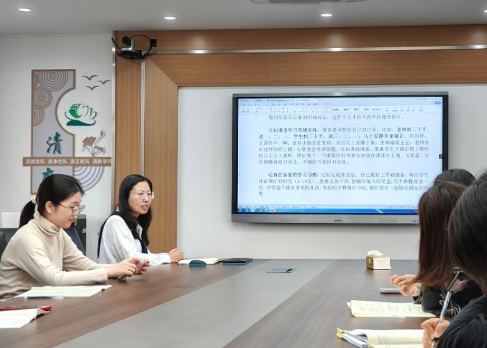 会上,沈红副校长为一年级教师进行了系统的培训指导。指导内容涵盖多个方面,包括课堂学习常规训练、思维习惯培养、课前准备、课外作业及完成习惯养成、学生书写规范指导,还包括教导学生热爱读书、爱护学习用品等。沈校着重指出,教师不应仅着眼于学生在校行为习惯,家校共育亦至关重要,需关注其在家学习习惯。要和家长积极沟通,传递习惯培养之法,使家校形成合力,全面护航,让好习惯助力学生成长。