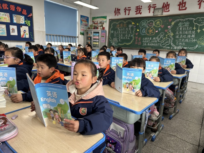 为促使广大小学英语教师在教学中重视英语朗读训练,培养学生养成良好的朗读习惯,提高学生的英语朗读能力,营造良好的英语学习氛围。根据区级精神,我校组织了校级英语整班朗读比赛。比赛以推磨巡评方式,评委按一1、一2、一3......依次类推的顺序到达班级后,由带☆组长抽选单元,确定内容。1. 全班学生齐读。2. 在班级中随机抽出四名学生朗读。