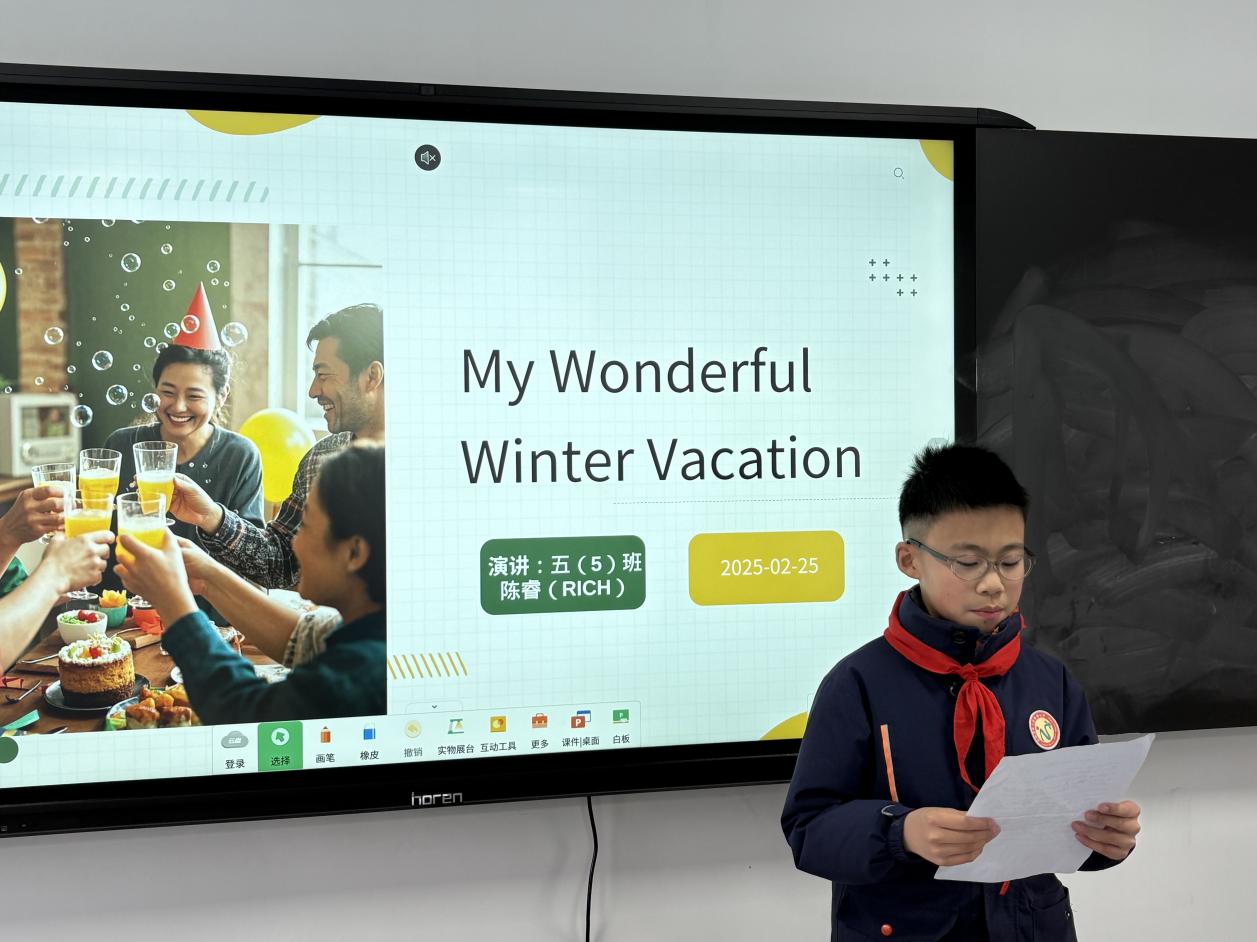 为了进一步提高学生的英语口语表达技巧,同时增强他们的自信心和公众演讲能力,南麻小学精心策划并成功举办了以“英语话假期”为主题的英语演讲比赛。2025年3月4日中午,五六年级的参赛学生齐聚一堂,他们不仅准备了内容丰富的PPT,还用流利的英语生动地描述了自己假期中的各种精彩经历。他们有的展示了与家人一同外出旅游时发生的有趣故事,有的则分享了在家中享受宁静假期时的温馨时刻。