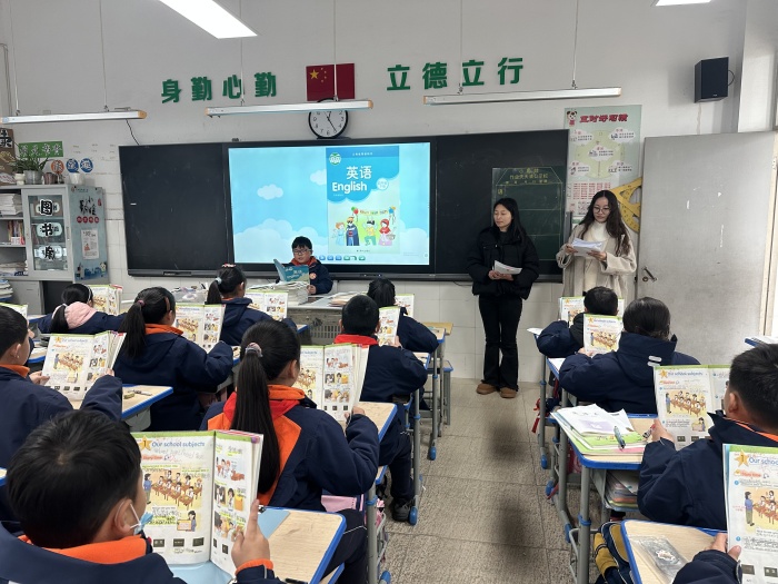 为促使广大小学英语教师在教学中重视英语朗读训练,培养学生养成良好的朗读习惯,提高学生的英语朗读能力,营造良好的英语学习氛围。根据区级精神,我校组织了校级英语整班朗读比赛。比赛以推磨巡评方式,评委按一1、一2、一3......依次类推的顺序到达班级后,由带☆组长抽选单元,确定内容。1. 全班学生齐读。2. 在班级中随机抽出四名学生朗读。